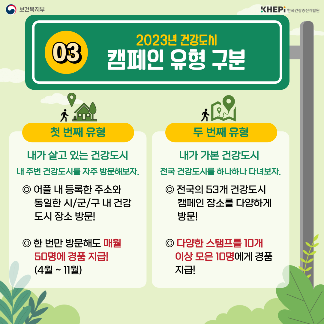 - 전국의 53개 건강도시 캠페인 장소를 다양하게 방문!