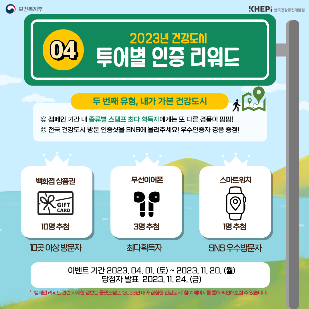 - 내 주변 건강도시 인증샷을 SNS에 올려주세요! 우수인증자 경품 증정!
