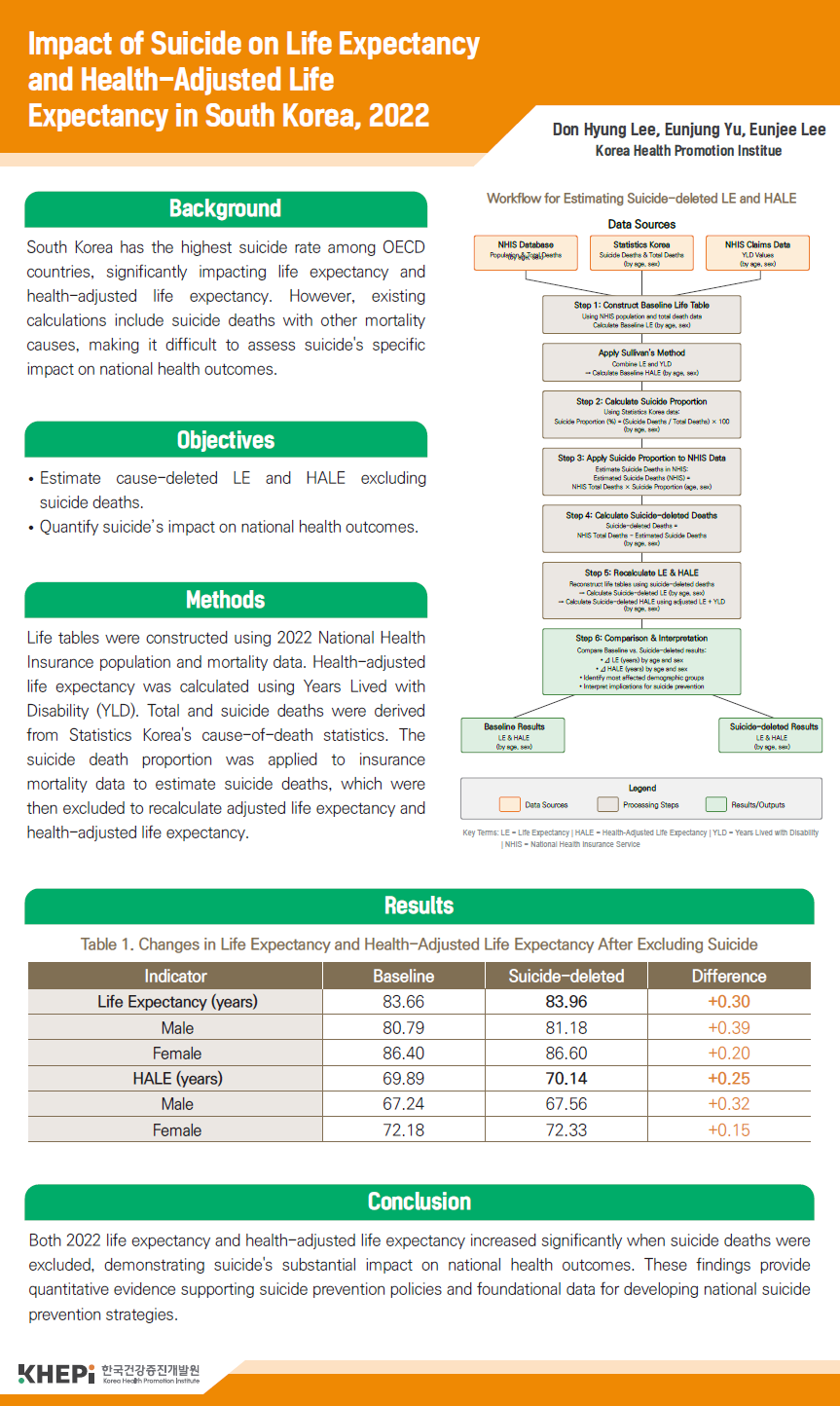 ㅇ 포스터 발표 1. Impact of Suicide on Life Expectancy and Health-Adjusted Life Expectancy in South Korea, 2022