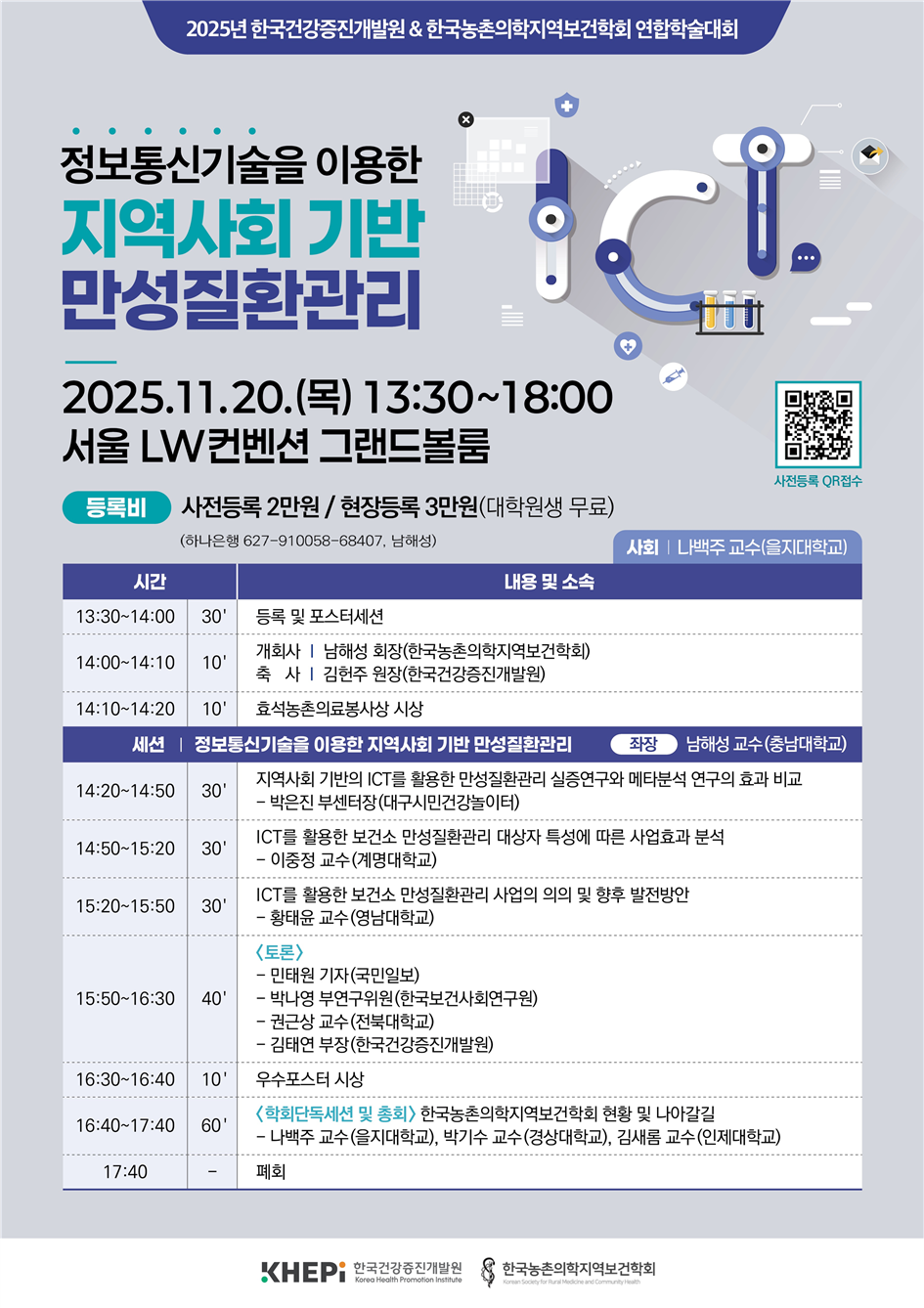 2025년 한국건강증진개발원 - 한국농촌의학지역보건학회 추계 연합 학술대회 개최